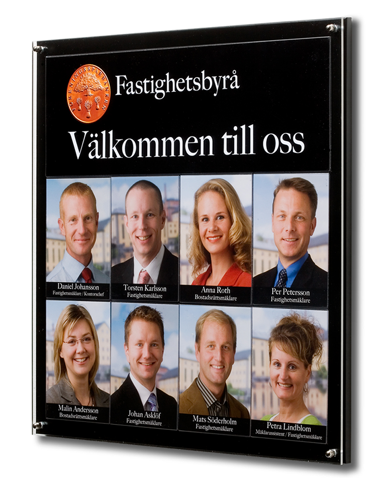 Akrylfront kan monteras framför bildfickorna. Lätt att montera och lätt att ta ta bort om man vill byta bilder.